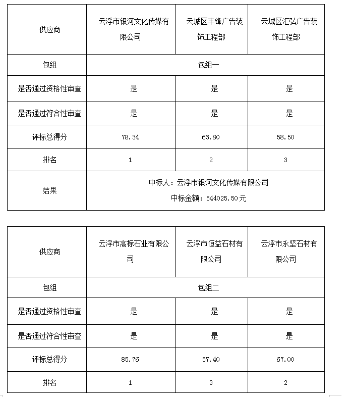 1:中標(biāo)供應(yīng)商名稱(chēng) 云浮市銀河文化傳媒有限公司 法人代表 唐海群 地址 云浮市云城區(qū)高峰羅桂橋新桂區(qū)45幢9號(hào)一層一卡商鋪(包組一)